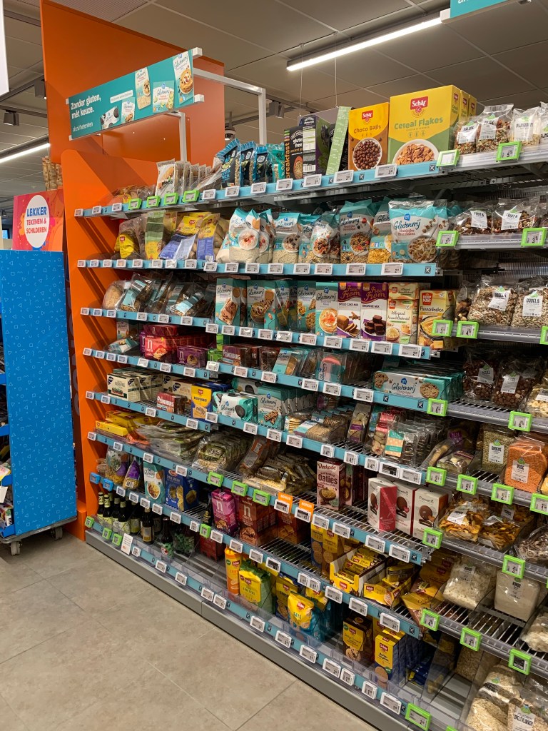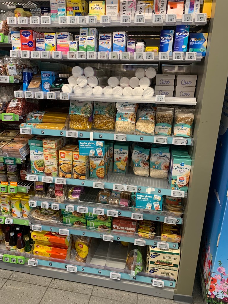 Albert Heijn has varying levels of gluten free options depending on the size of the store. However, many we saw in Amsterdam were smaller supermarkets with a couple of shelves of essential gluten free products in the medicine aisle.