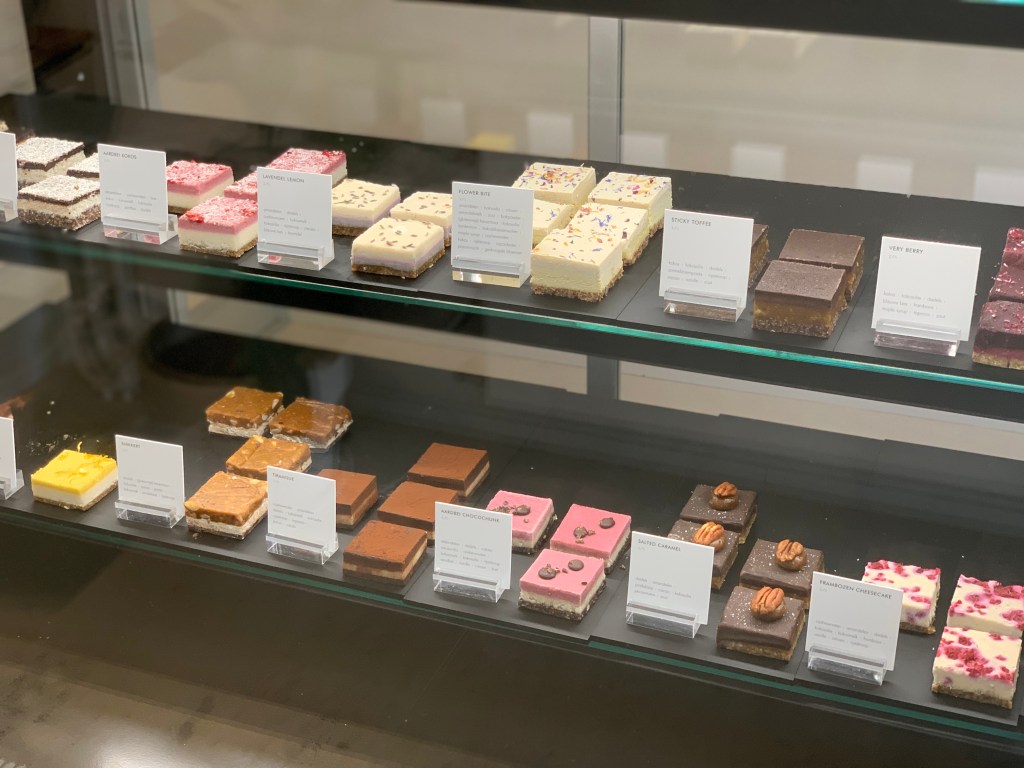 I had Sue Bites saved in my Google maps, and happened to be passing as we needed to find a toilet after a lot of walking around Amsterdam. As we were nearby we popped in and they had a customer toilet so we bought a gluten free and vegan raw slice in exchange. I ordered the key lime pie slice which was zesty and very good. This type of slice will never beat cake in my opinion but if you’re looking for a gluten free and vegan treat in Amsterdam this is the place for you.