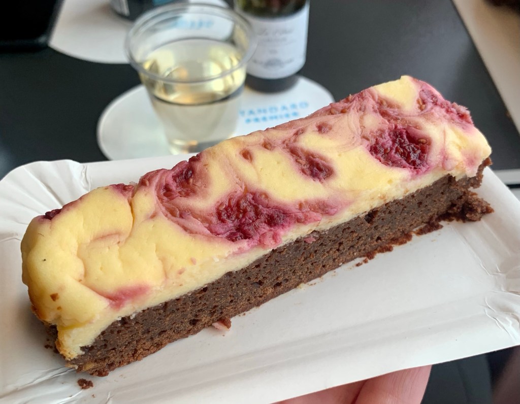 The cafe always gets good reviews so it’s a shame I couldn’t try it and it’s on my list should I return to the city. I did however get a slice of the cheesecake brownie which I would say was more of a chocolate cake than a fudgy brownie and didn’t have much flavour of raspberry but that could have just been for decoration. I was still very glad of it on the train when everyone else got kitkats with their drinks!